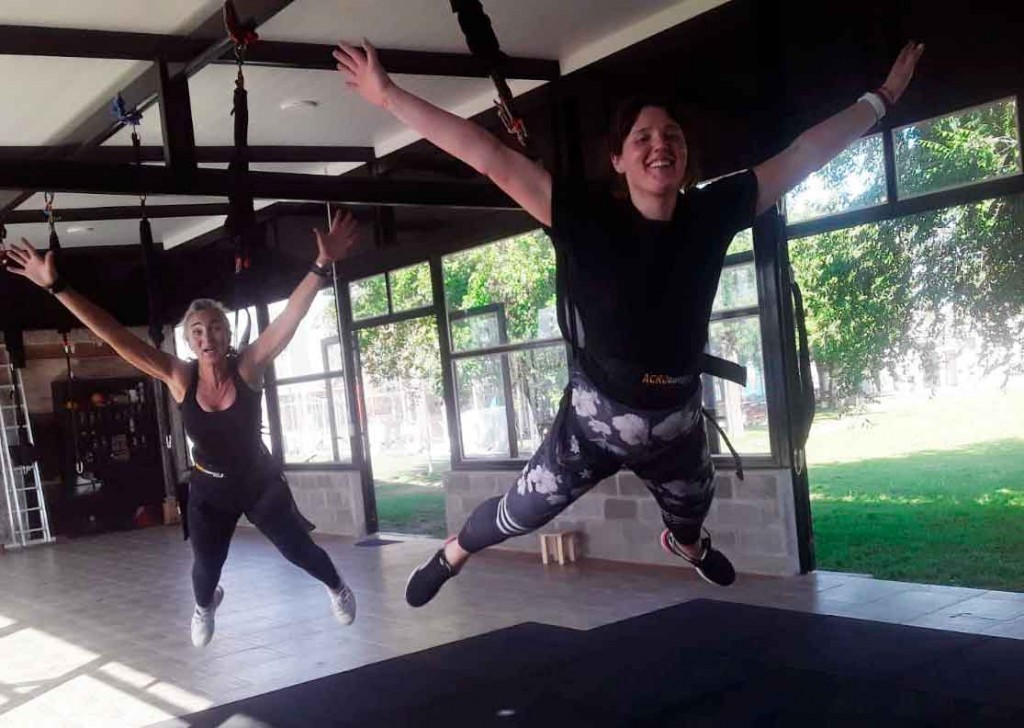 “Trajimos a Bolívar una nueva disciplina que se llama bungee traning”, comentó Gabriela. Al mismo tiempo, explicó “es una actividad que se realiza colgadas de arneses y elásticos”.