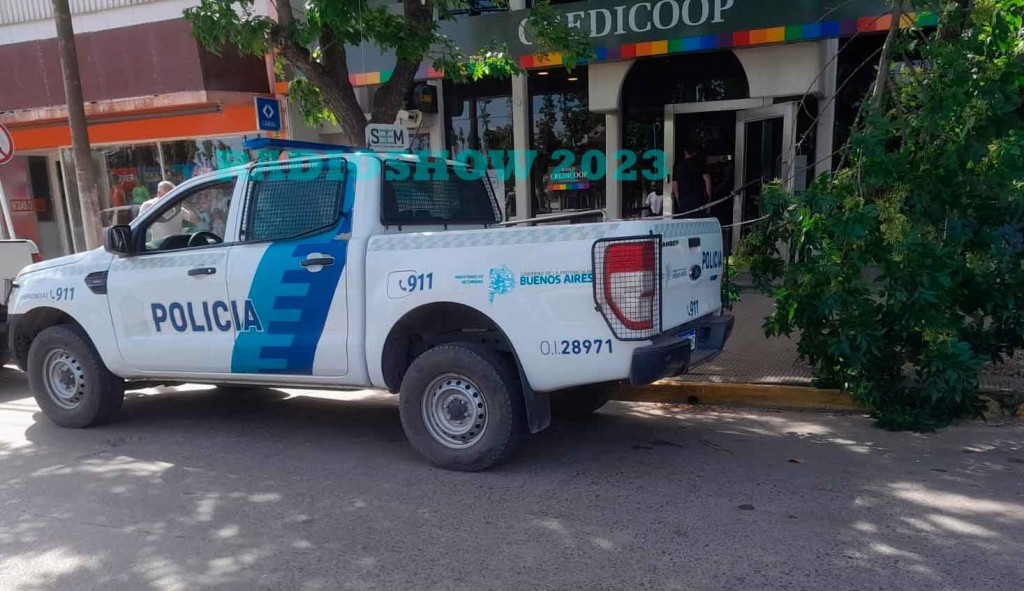 Un móvil policial se encontraba en el ingreso al Banco Credicoop, más aún, teniendo en cuenta el volumen de comercial de la cuadra.-