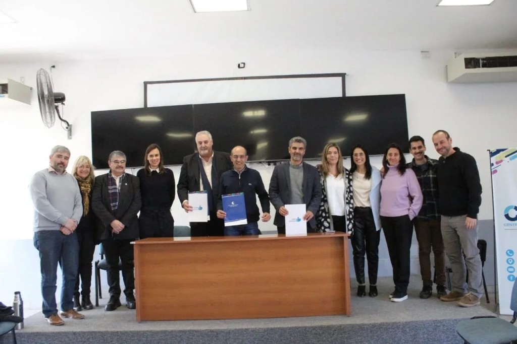 Acompañaron al intendente municipal en la firma del convenio, el equipo de Educación Municipal, el secretario de Gobierno Marcos Beorlegui y referentes académicos de la Universidad Nacional de Mar del Plata.