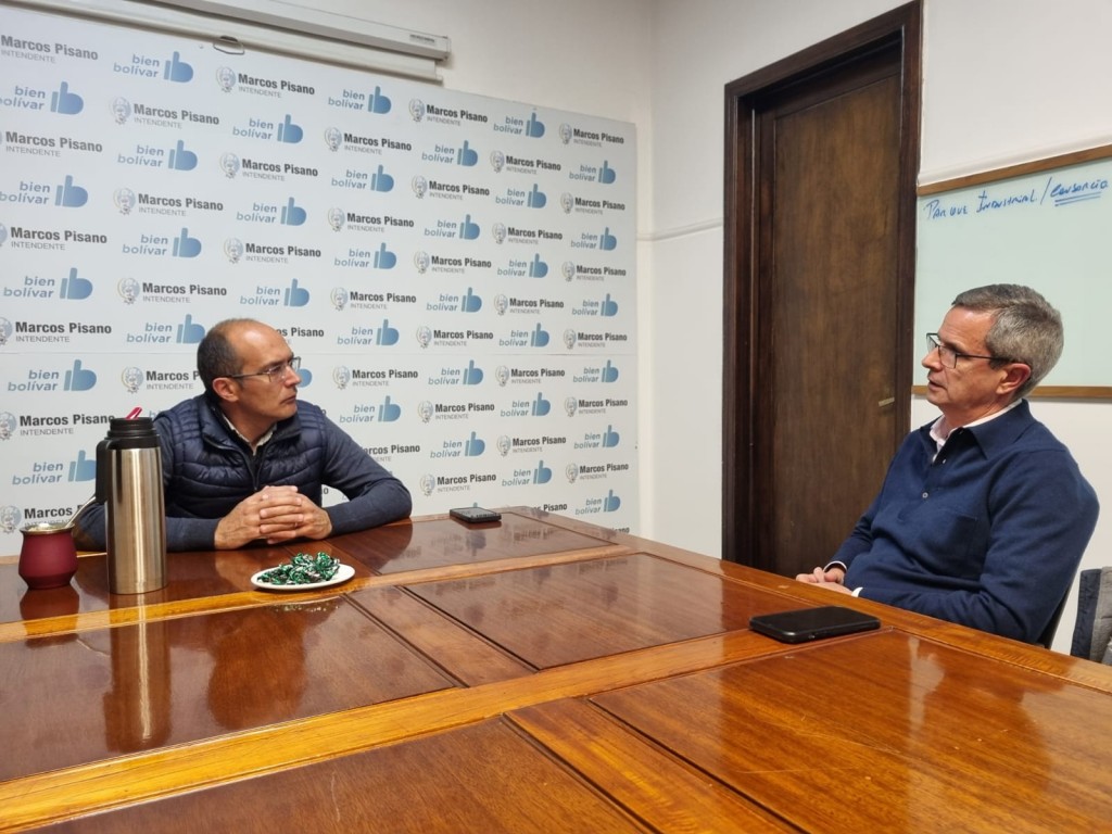 Este lunes, el intendente Marcos Pisano junto a la secretaria de Salud Cecilia Luna, recibió en Bolívar al miembro de la entidad promotora de Universidad Austral, Ingeniero Lucas Niklison.-