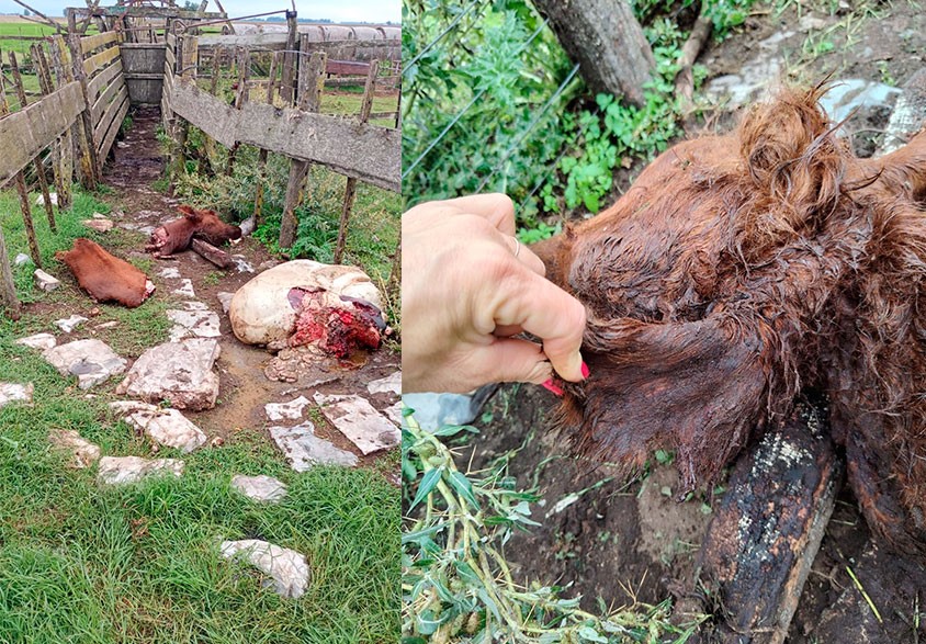 Nosotros tenemos unos terneras encerrados, unas terneras encerradas acá en un campo de la zona de Unzué, ingresaron y nos carnearon un animal”