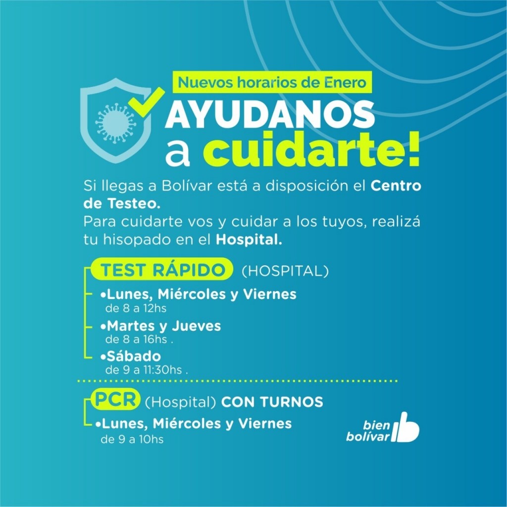 Se informa a la comunidad los días y horarios que se realizarán los Test Rápidos y PCR para detectar Covid-19, en el ingreso a la Guardia Respiratoria del Hospital Municipal, durante el mes de enero.