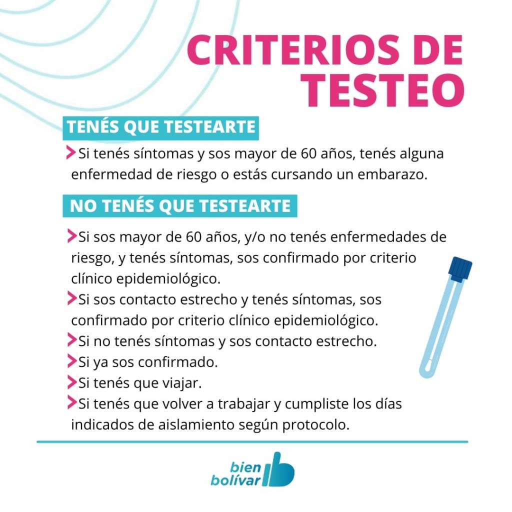 El Gobierno Provincial dispuso un nuevo criterio de testeo, debido a la tasa de incidencia de la cepa Ómicron, a partir del cual sólo deberán hisoparse las personas mayores de 60 años que tengan síntomas compatibles con el coronavirus; quienes tengan factores de riesgo o cursen un embarazo. El resto de la población se considera, desde ahora, caso confirmado por criterio clínico epidemiológico.