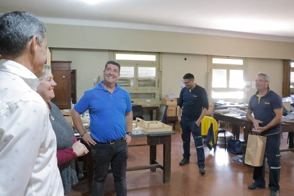 En las oficinas del Correo Argentino, Fernández fue recibido por sus trabajadores Alberto Hoz, Walter Tisoni, Mariela Criado y Renzo Campitelli a quienes les entregó un presente en nombre de la Gestión Municipal.
