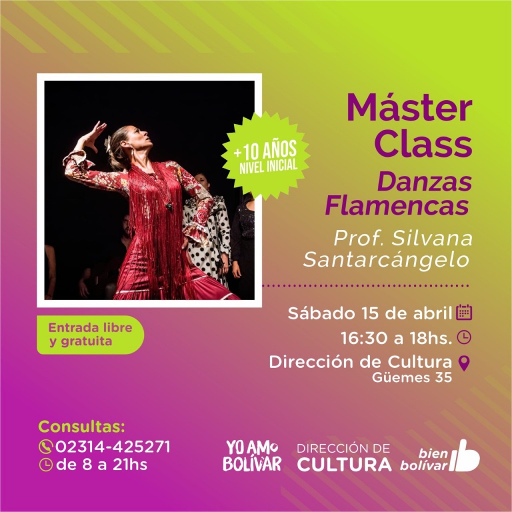 La Dirección de Cultura, encabezada por Jorge Fernández, ofrece una nueva Máster Class de Danzas Flamencas, a cargo de la profesora Silvana Santarcángelo.-