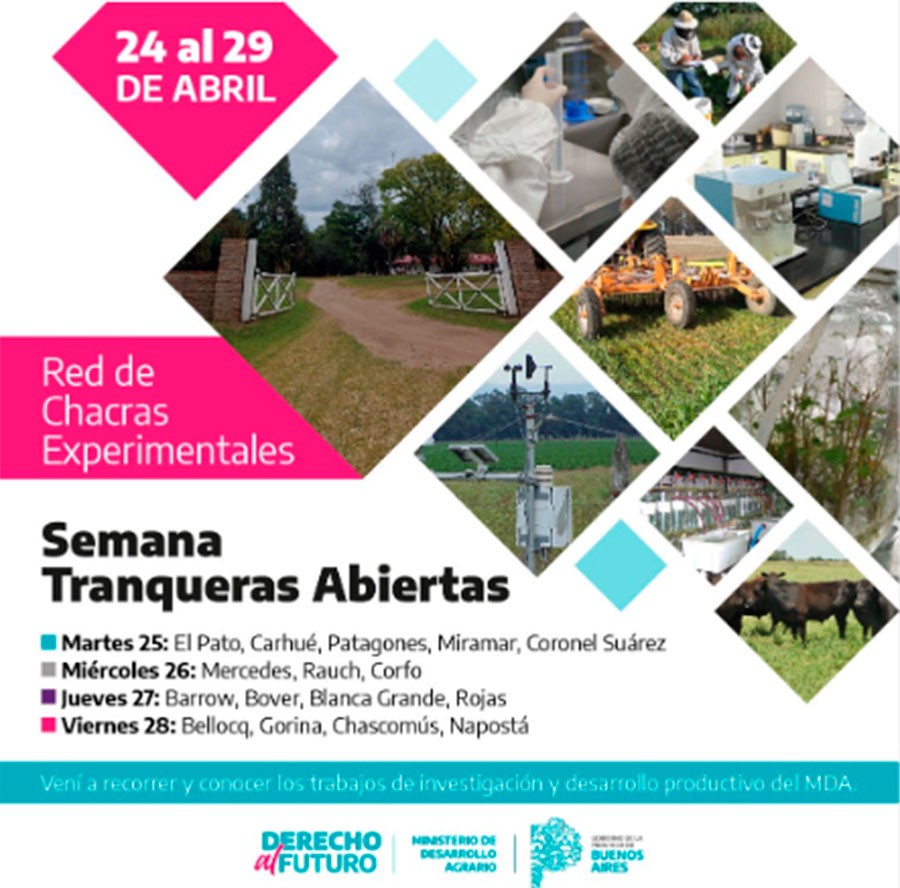 El próximo jueves 27 de abril la Chacra Experimental Blanca Grande abrirá sus puertas a todas y todos aquellos interesados en conocer los trabajos de investigación e innovación científico-tecnológica y los ensayos vinculados a la producción ganadera, agrícola, agroecológica y apícola que se llevan adelante en el predio de la misma, ubicado en Ruta n° 226 Km 360, partido de Olavarría.