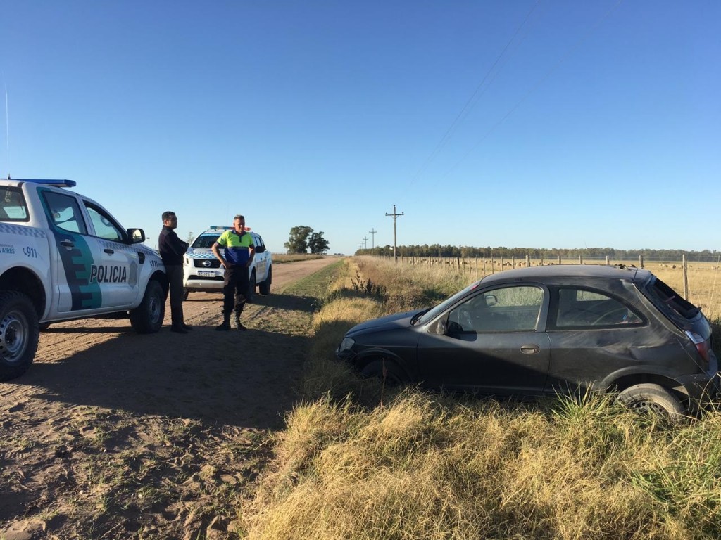 El vehículo es un Suzuqui Fun, con dominio colocado GJB 091 que pertenece a un bolivarense. Arribó al lugar una dotación de Bomberos Voluntarios a bordo de la Unidad nº5 a cargo del Comandante Martín Moreno.