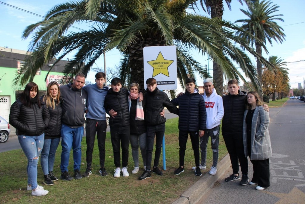 En memoria del joven Jeremías Chersich, víctima de tránsito, se colocó una estrella amarilla con su nombre, en el marco del Día de la Seguridad Vial.