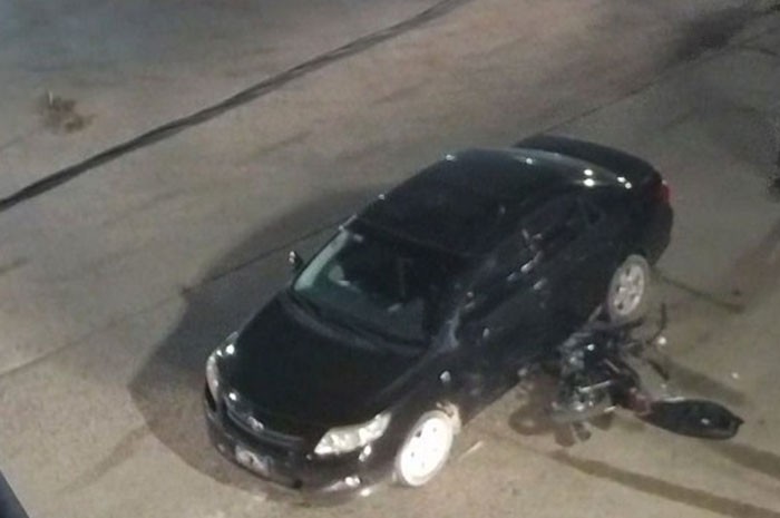 Se registró una colisión entre un vehículo Toyota Corolla con dominio colocado HQH29433211683) y una moto Zanella 110 cc con dominio colocado A011ROJ.