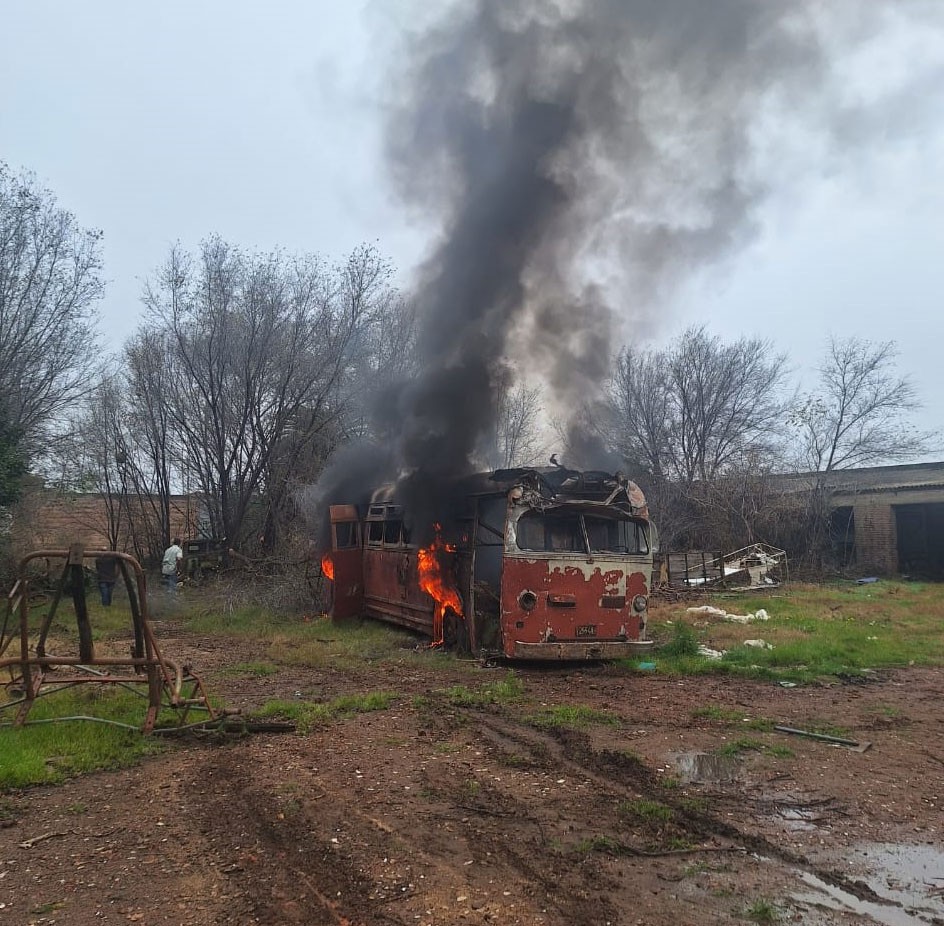 Acudieron Bomberos Voluntarios y Equipo Emergente, y quemaban residuos en el interior de un colectivo