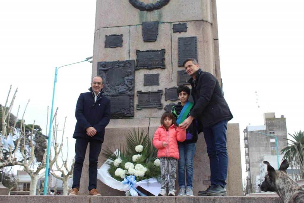 La conmemoración comenzó a las 14 horas con el izamiento del Pabellón Nacional en el mástil central, donde el intendente junto al senador, acompañados por miembros del Ejecutivo Municipal, integrantes del Honorable Concejo Deliberante, representantes de instituciones locales y fuerzas de seguridad.