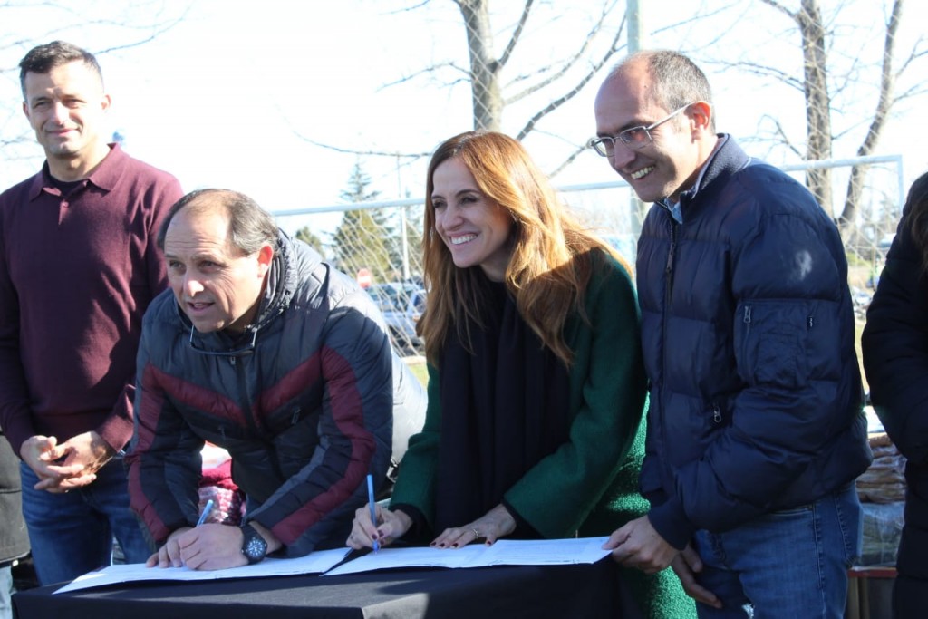 La Ministra de Desarrollo Social de la Nación, visitó Bolívar, recorrió instituciones, firmó convenios e hizo entrega de material deportivo, aportes y elementos de emprendedorismo y rezago de Aduana. El acto de entrega se formalizó en las canchas del Club Alem, donde estuvieron presente las autoridades de la Liga y los clubes.