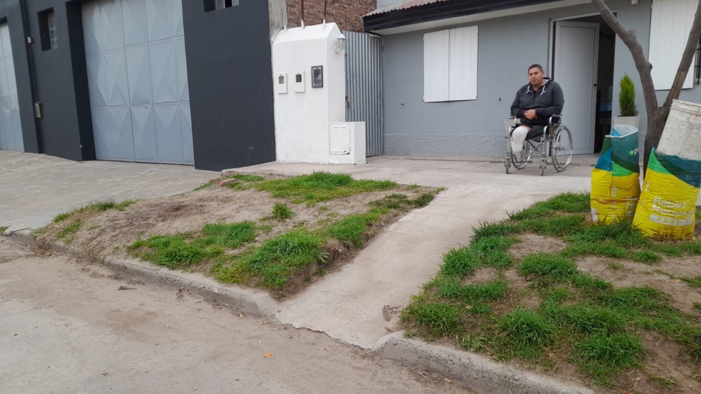 Ricardo pertenecía al Servicio Penitenciario pero fue operado en Junín y le amputaron las dos piernas, tiene una rampa hecha pero no cumple las condiciones de seguridad para que la pueda utilizar y salir o entrar a su casa si riesgos.