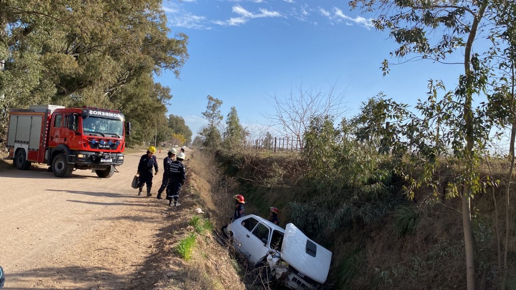 Bomberos Voluntarios y el Sistema Emergente, asistieron a un vehículo que cayó en la cuneta