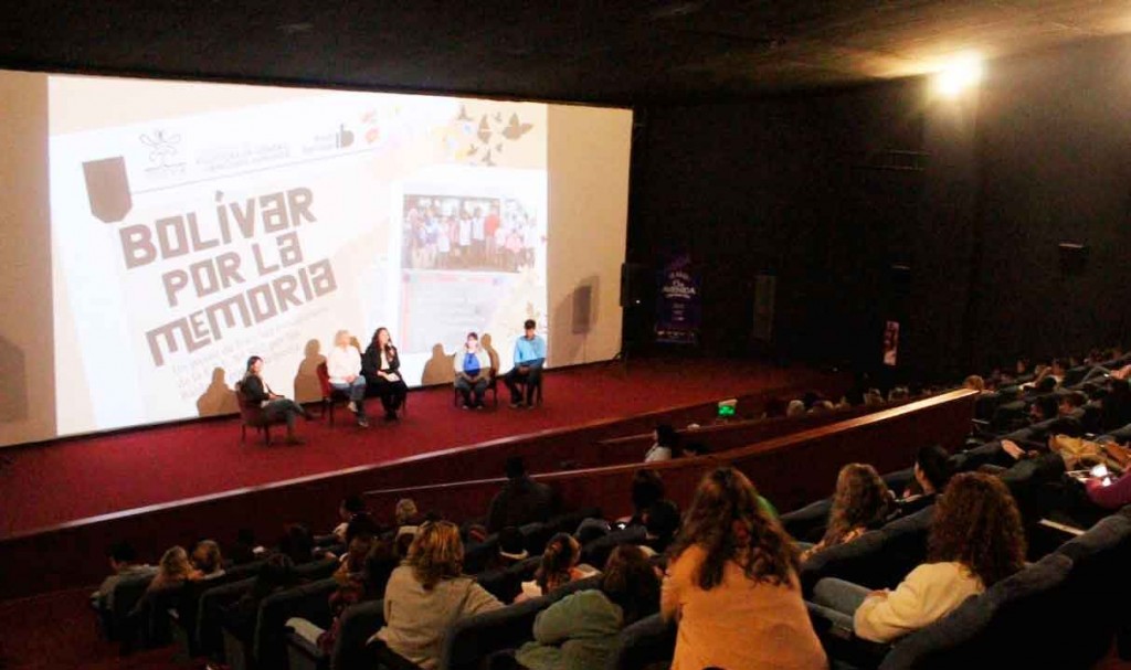 Este miércoles en el Cine Avenida, la Dirección de Políticas de Género y Derechos Humanos presentó el libro "Bolívar por la Memoria", junto a las autoridades de la Escuela Nº502. Se trata de una pieza literaria realizada por estudiantes, docentes y colaboradores municipales.-