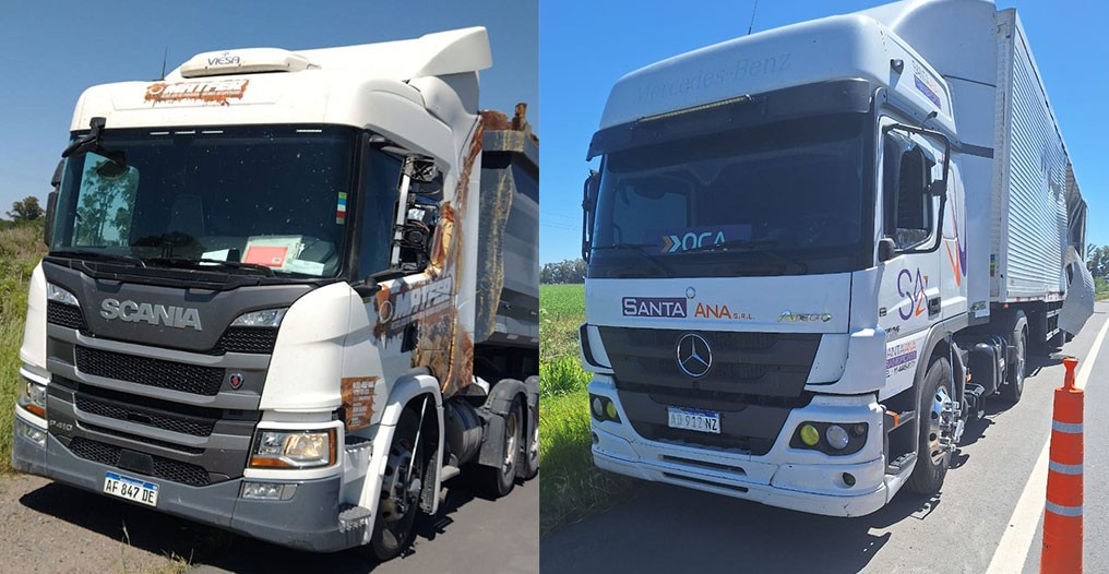Se trata de un camión Scania con dominio colocado AF847DE, conducido por Teodoro José Fuchs, oriundo de Coronel Suárez. Por la otra parte, un Mercedes Benz 1726 con dominio colocado AD912NZ, que remolcaba un semi, con dominio colocado AF268PT. Este último era conducido por Ricardo Nicolas Sánchez de General Pico.
