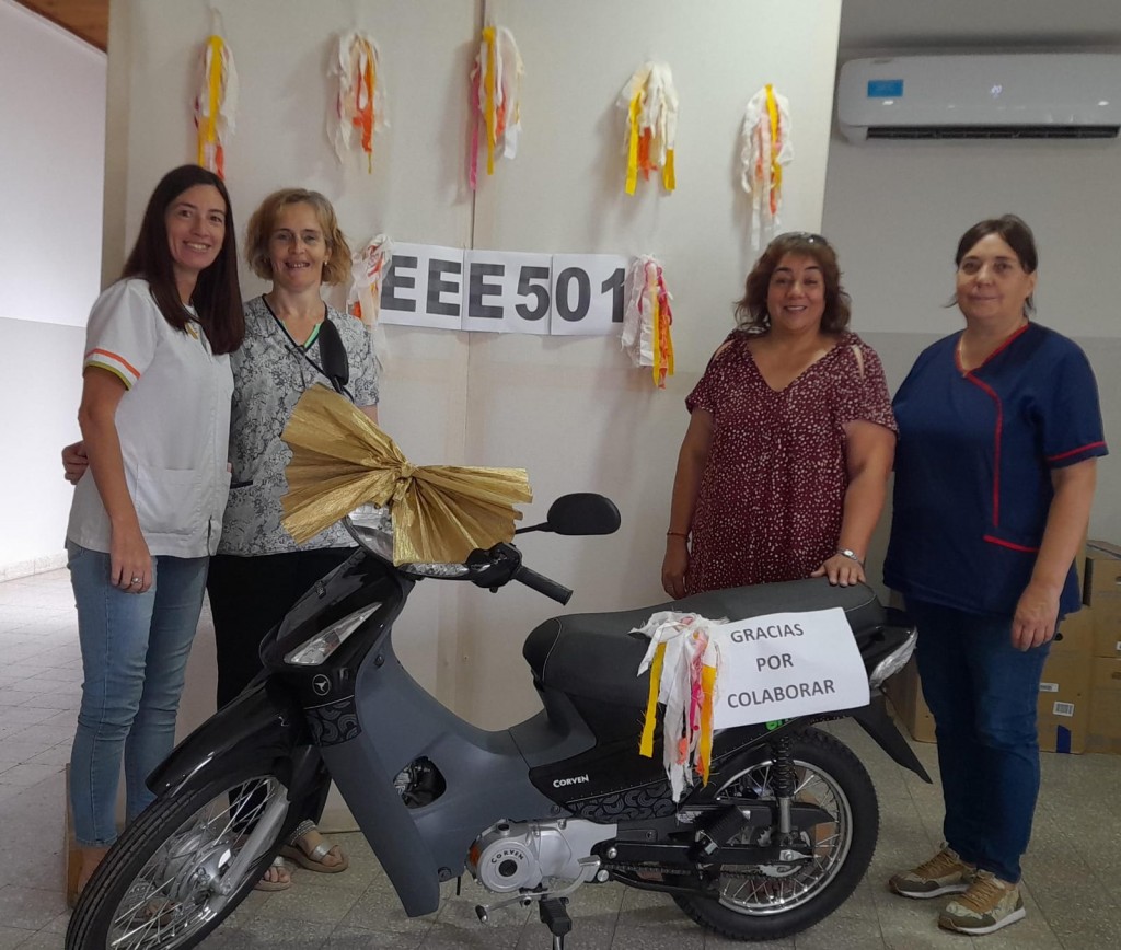 La Cooperadora de la Escuela de Educación Especial 501, entregó la moto a su ganadora