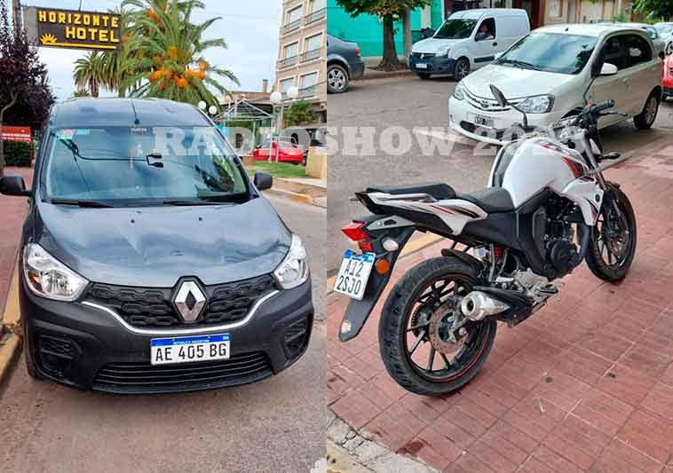 Se trata de una colisión registrada entre una camioneta Renault Kangoo con dominio colocado AE405BG, conducida por un masculino, y una moto Yamaha FZ 160cc con dominio colocado A122SJO conducida por una femenina.