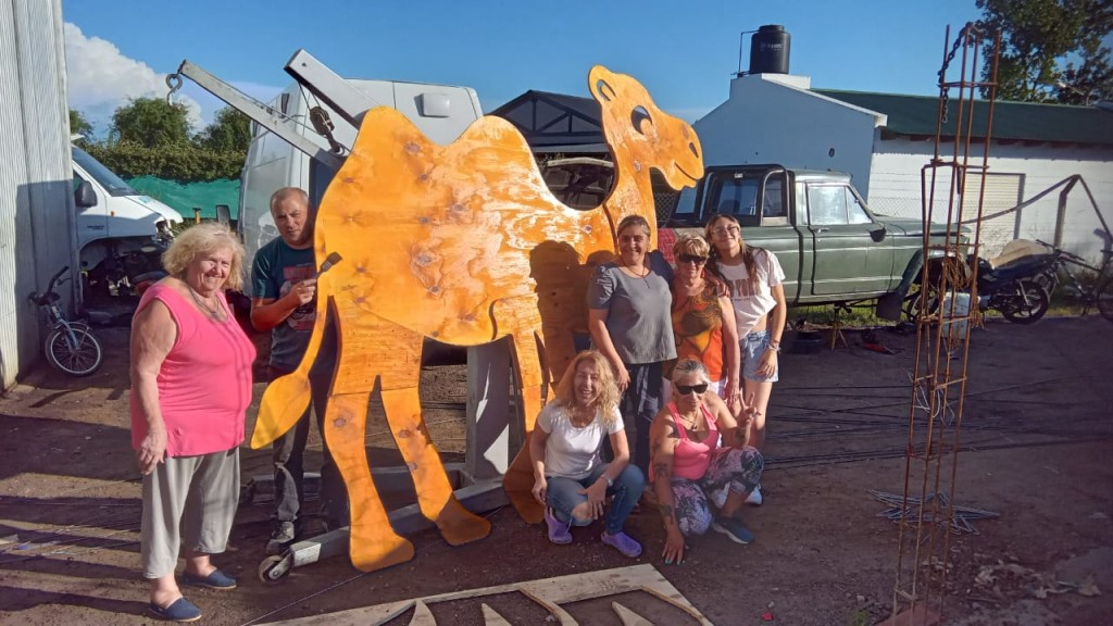 En diálogo con Sandra Renna en el taller, contó que utilizando elementos reciclados de años anteriores y montado sobre una carretón de Marcelo Aragón, comenzaron a trabajar con la figura de tres camellos tallados en madera que complementarán junto a loos Reyes Magos, la carroza que este domingo la comunidad toda, podrá disfrutar en el Centro cívico.-