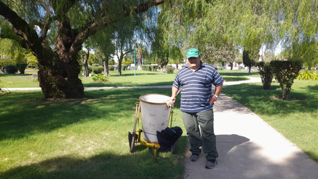 Además de contar con una trayectoria de más de 30 años en la Municipalidad de Bolívar, cuida las dos plazas ubicadas frente a la Sociedad Rural de Bolívar como si fueran parte de su casa. Recorriendo se las puede ver con el mayor cuidado de su parte, y también ha fundado una relación de amistad con los vecinos del barrio. Este jueves lo visitamos con el móvil de FM 10.-