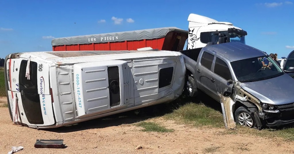 El siniestro ocurrió a la altura del kilómetro 115,400 cuando una pick up Volkswagen Amarok ,color gris, que remolcaba a un furgón Mercedes Benz Sprinter , ambos pertenecientes a Pericoli turismo , al intentar sobrepasar a un camión de gran porte , el conductor de la pick up pierde el control del rodado ,generándose una maniobra de "tijera" con la Sprinter que remolcada donde luego de rozar el lateral del semirremolque, vuelca sobre la zona de préstamo y banquina de la mano contraria a la que circulaba.