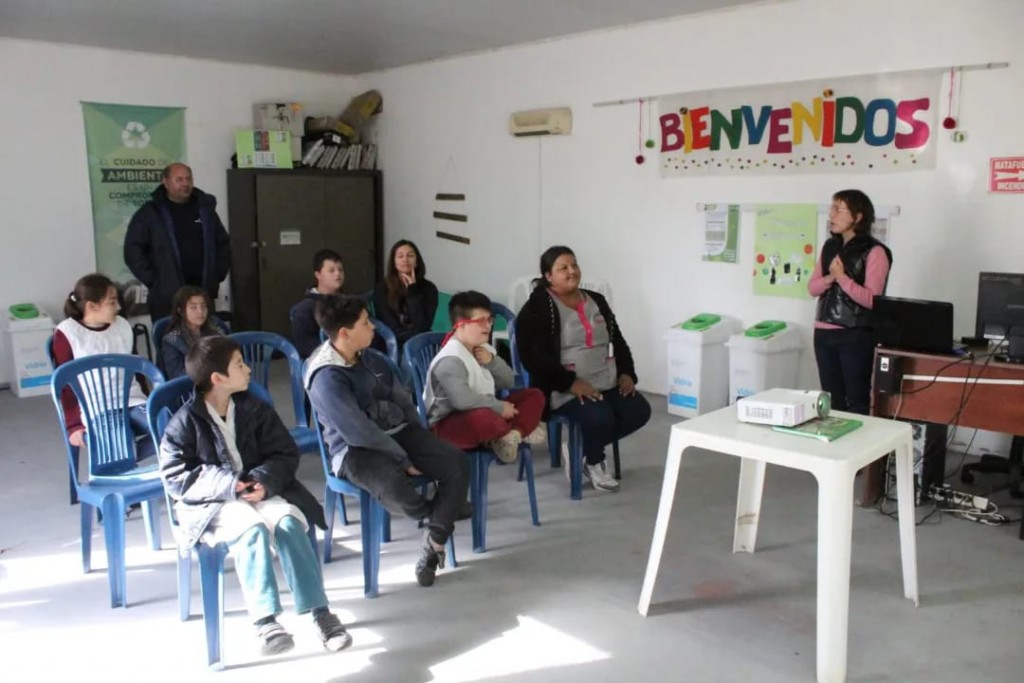 Dentro del aula verde en el predio de la Planta de Reciclaje, abordaron temáticas como: separación de residuos secos y húmedos, su correcta disposición en los Puntos Verdes (Contenedores), y Compost.