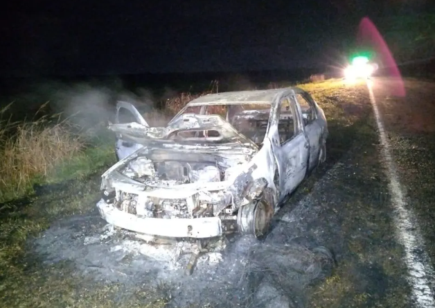 Ruta 226: Destrucción total de un auto tras un incendio en zona de Espigas
