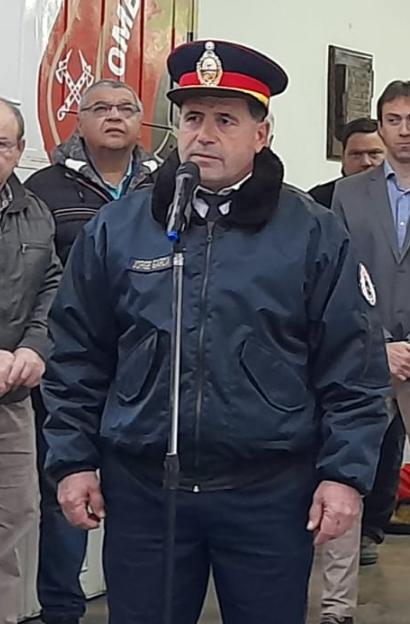 El Jefe del Cuerpo Activo, Comandante Jorge García, fue entrevistado por Sandra Renna tras el acto protocolar, y dejó conceptos muy significativos respecto de la definición de Bombero Voluntario, y la vocación que empuja a los hombres que lo integran.-