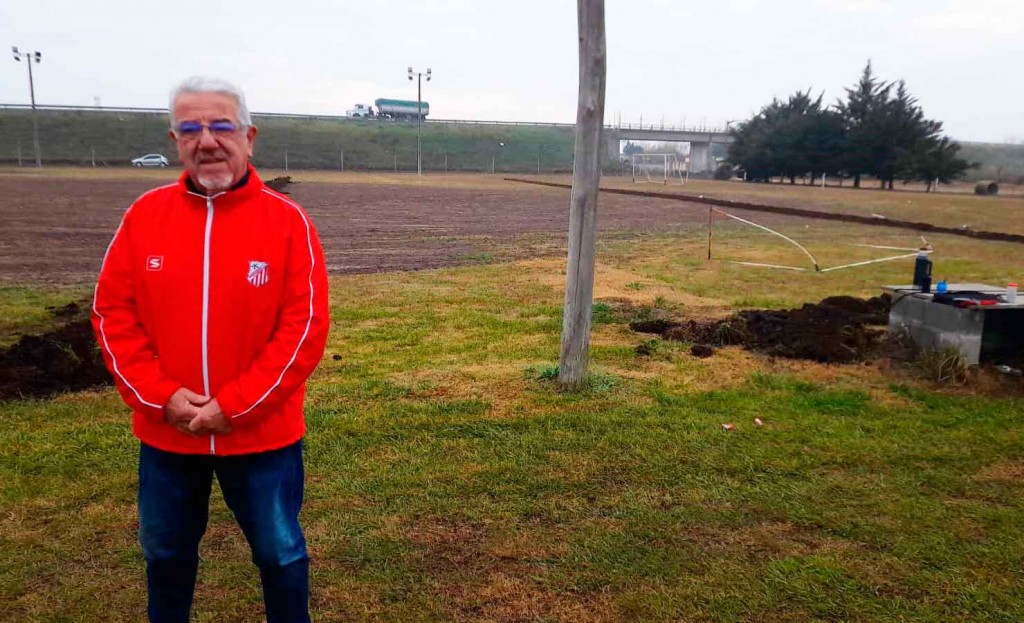 “La obra que está a mis espaldas, que tal vez sea una de las principales de estos últimos tiempos, es el riego por aspersión para la tercer cancha auxiliar. Esta cancha hasta ahora no se utilizaba mucho, con el auge del fútbol femenino y cada día que pasa, nuestras divisiones inferiores tienen más chicos, nos estaba haciendo mucha falta tener una cancha bien preparada como para competiciones y también para entrenamientos”.