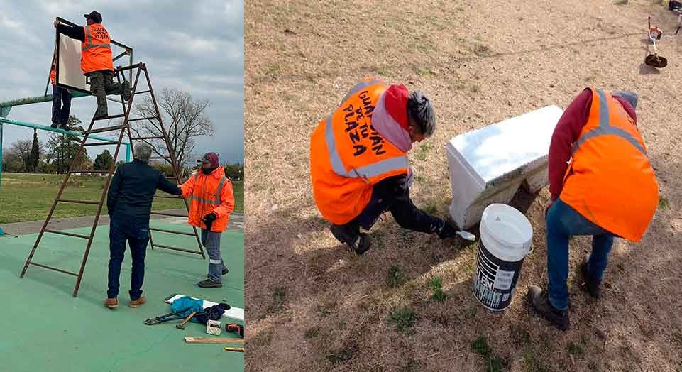 A través del programa municipal “Guardianes de tu plaza” la cuadrilla de agentes, a cargo de Fernando Álvarez, se encuentran trabajando en el reacondicionamiento de los espacios públicos en diferentes barrios de la ciudad.