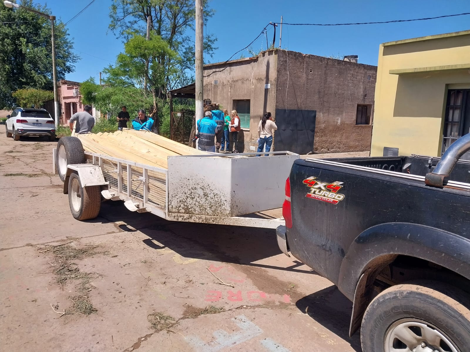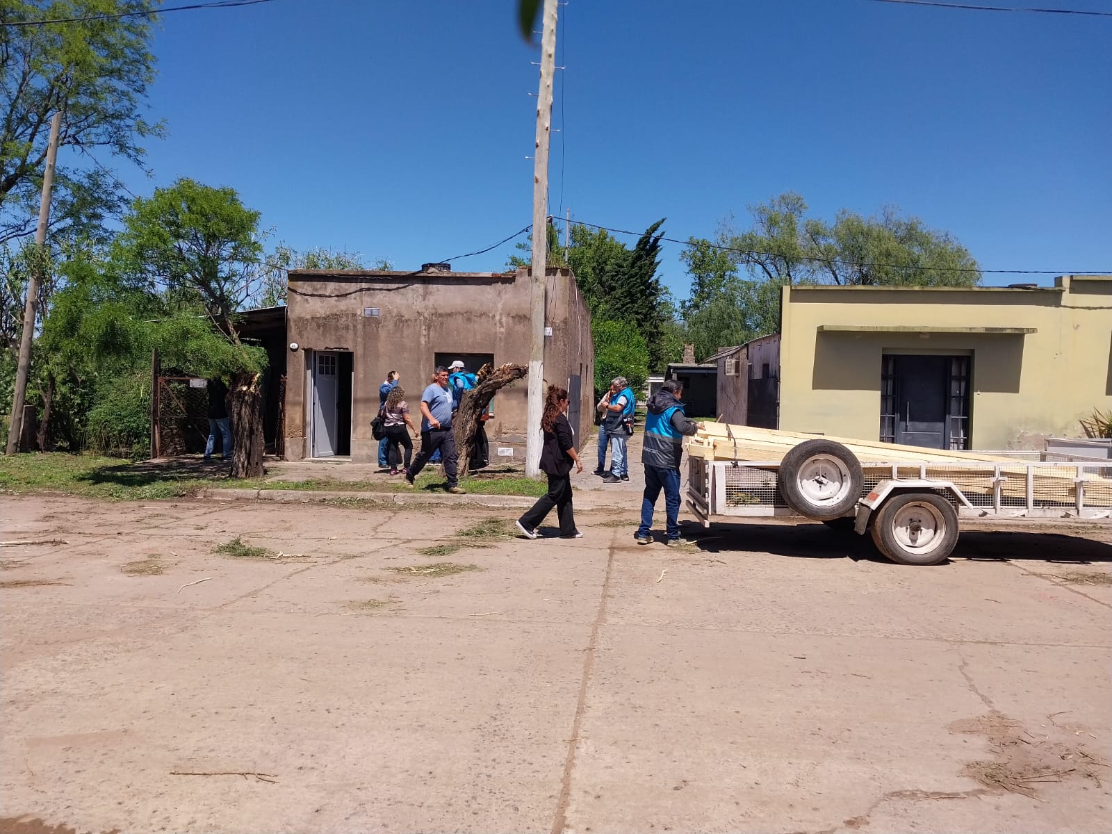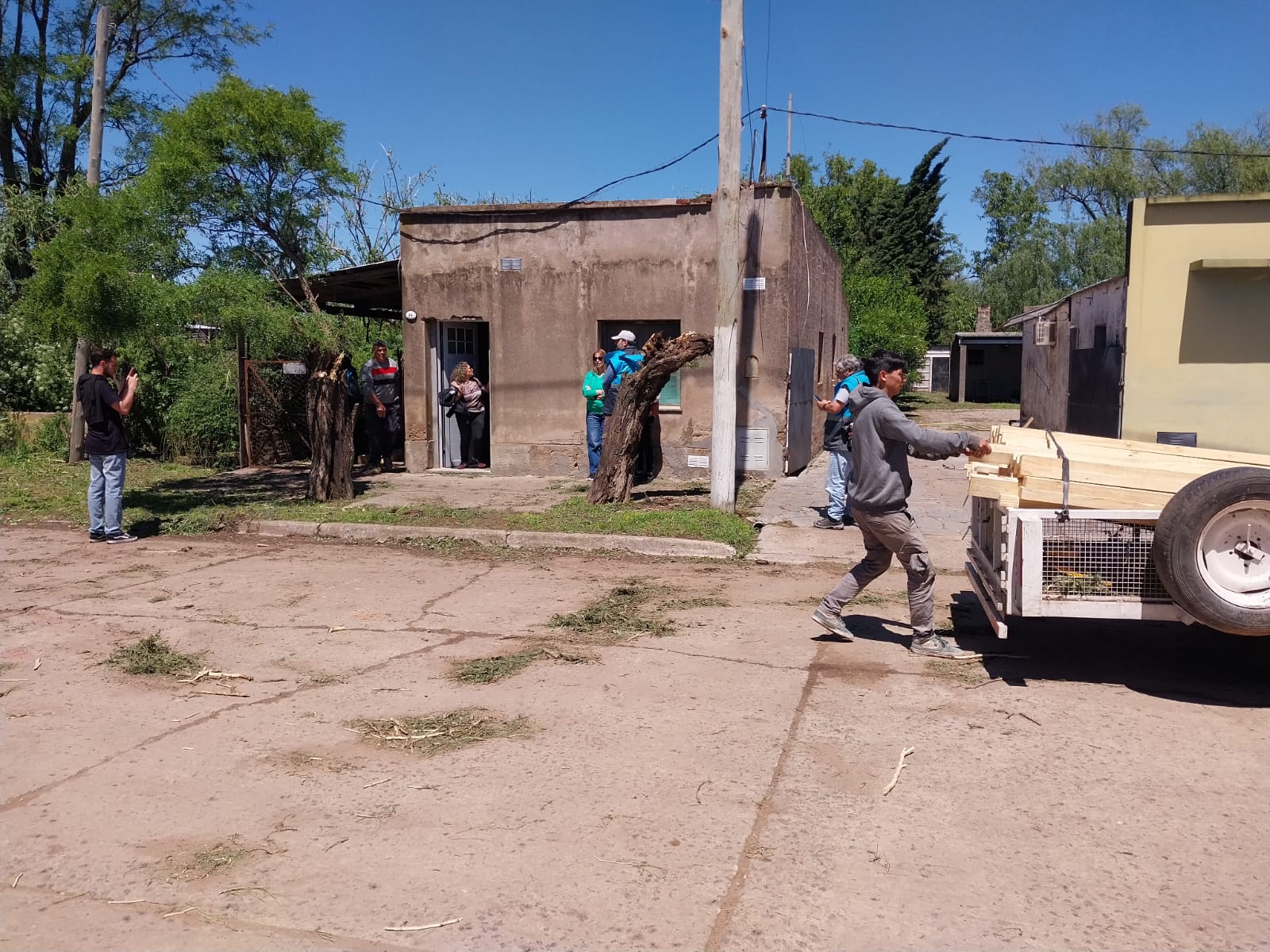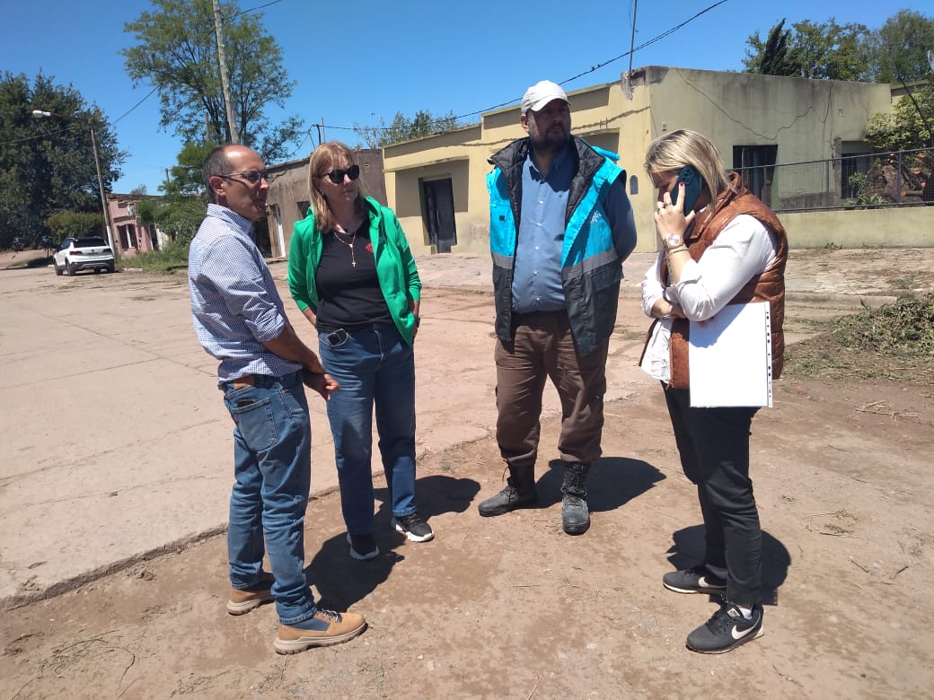 Luego del fuerte temporal que afectó a Urdampilleta, el intendente Marcos Pisano sigue acompañando de cerca las tareas de recuperación junto a la delegada Micaela Chiminella, y un amplio equipo de trabajo