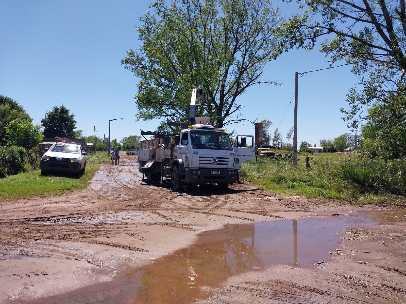 Además, continúa el trabajo articulado con las Cooperativas Eléctricas de Bolívar y Urdampilleta, que se encuentran realizando tareas para restablecer el servicio en todos los sectores, junto al servicio de grúas del Municipio.