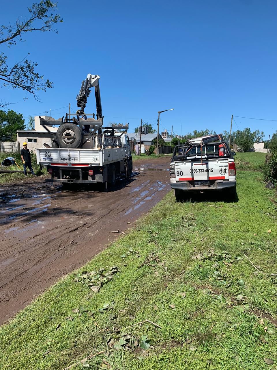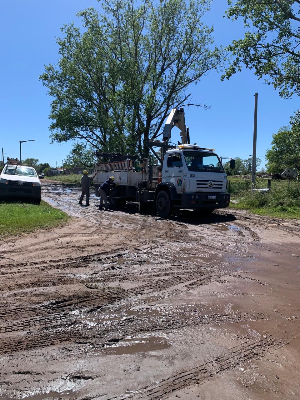 Durante la jornada de hoy, dos cuadrillas del área técnica de la Cooperativa Eléctrica de Bolívar se encuentran trabajando en la localidad de Urdampilleta, colaborando con las tareas de reparación y restitución del servicio eléctrico tras el fuerte temporal que afectó a la zona urbana.