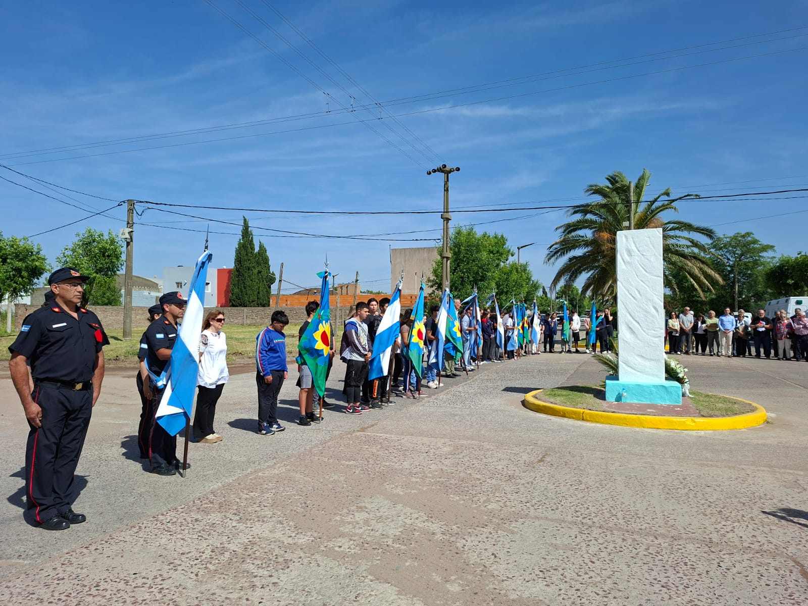 Participaron del acto banderas de ceremonia de distintas instituciones educativas e intermedias de la comunidad, integrantes del HCD , funcionarios municipales, ex intendentes y público en general.