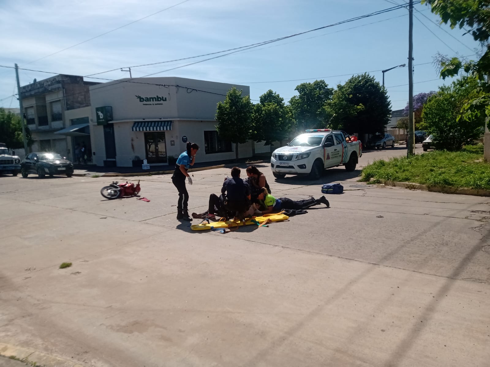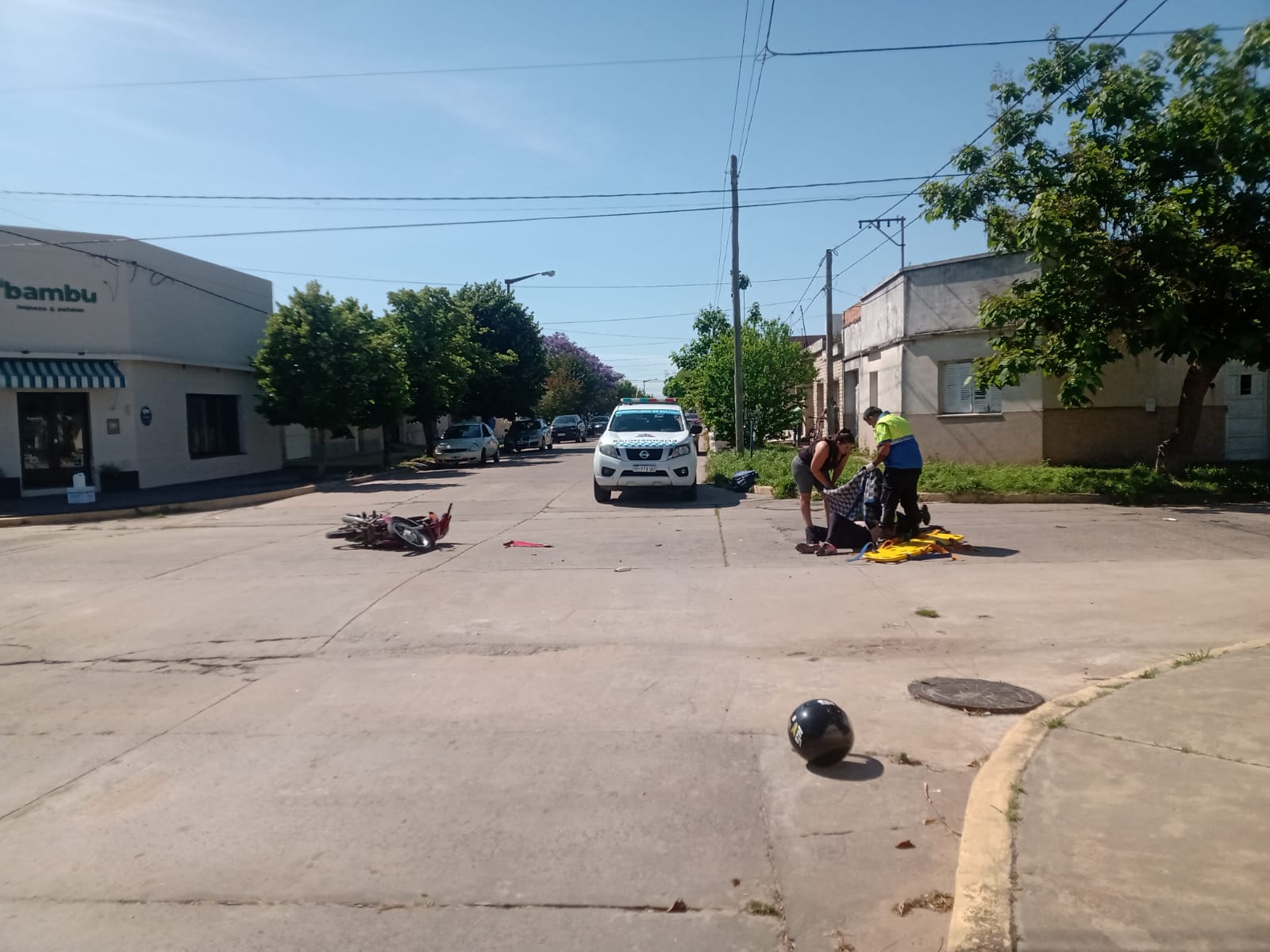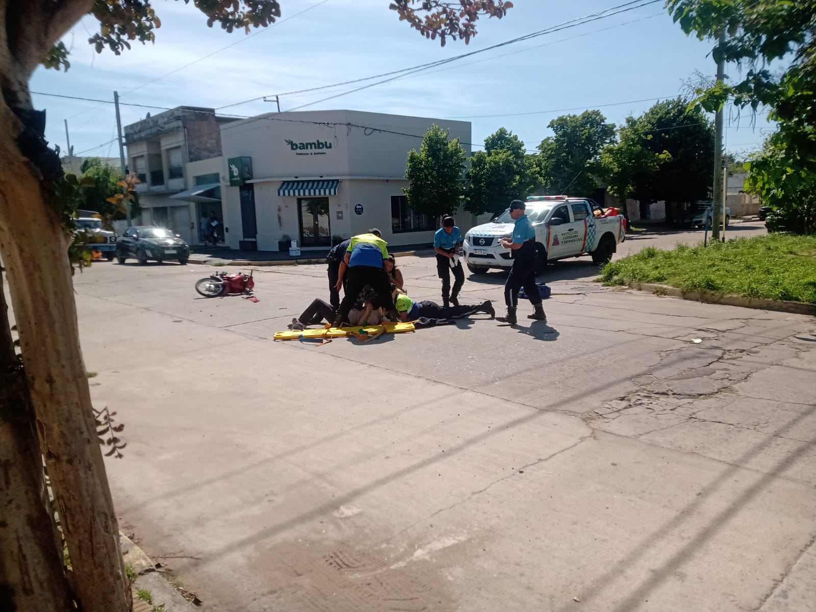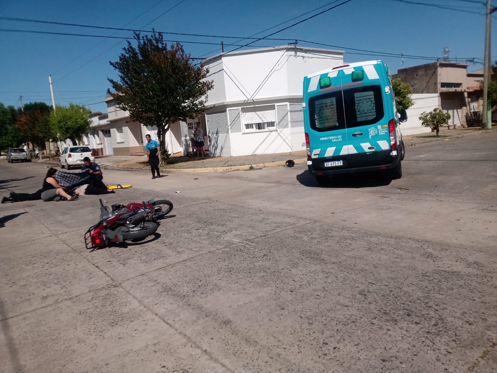 Una ambulancia del SAME local, con personal médico y paramédico, trasladó en primera instancia a la motocilista que podría haber sufrido alguna lesión en una de sus piernas, si bien se encontraba consciente.