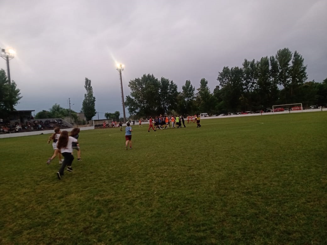 El local abrió el marcador en forma rápida, a los 7 minutos del primer tiempo, con un gol de Agustín Álvarez. A los 38 minutos amplió el marcador Nicolás Bereciartúa, y cuando parecía que se iban al descanso con ese parcial, Facundo Los Arcos en contra de su arco, dejó el 3 a 0 arriba para Balonpie.