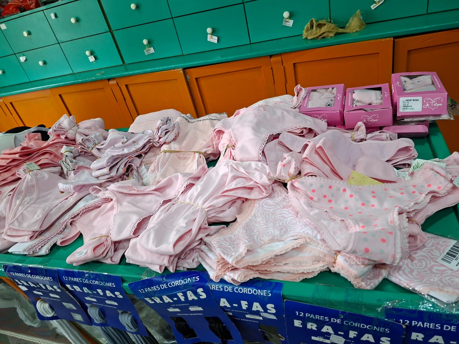 El rubro es muy amplio porque vemos desde lo que es media, de todo tipo de tamaño, hasta una cartera para completar un outfit de una fiesta, esas carteras que son chiquitas para un vestido de fiesta, ¿no? Así es, así es. Lo que es billutería. Todo lo que es billutería, todo lo que es conjuntos para mujer.