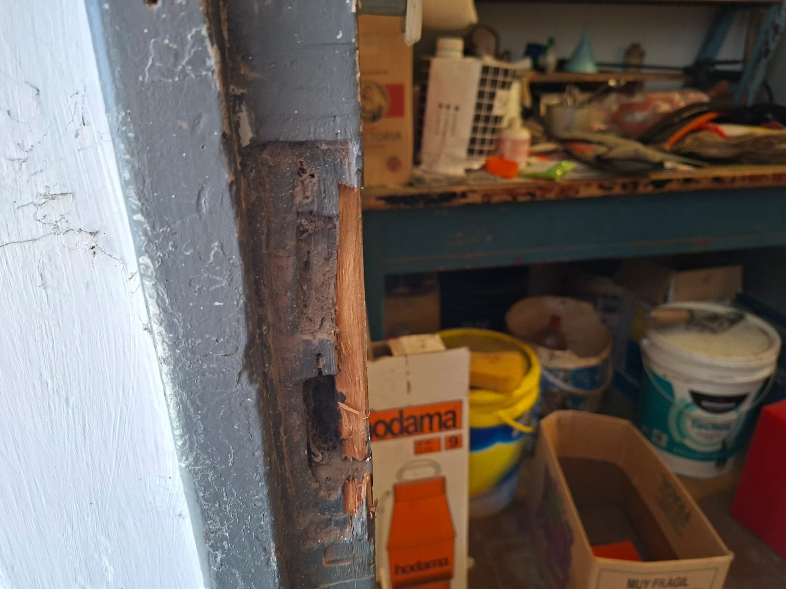 Este lunes por la mañana, Eduardo salió a recorrer el predio como lo hace de manera habitual, y se encontró con la puerta de la sala de herramientas literalmente “reventada". No puedo decir que el robo viene porque ahora tenemos movimiento porque estaría faltando a la verdad, yo no culpo