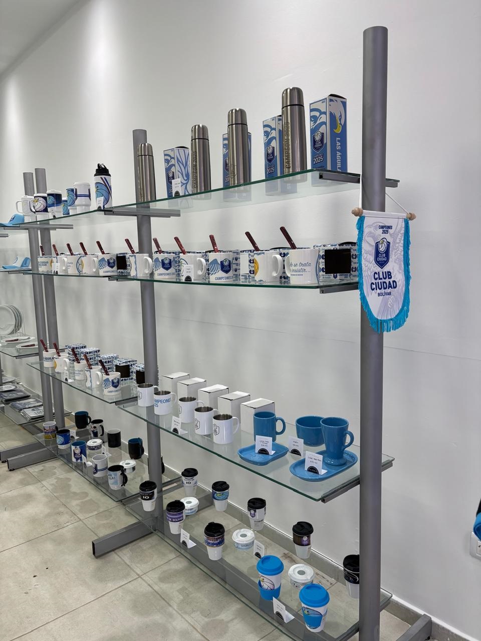 Hay disponible toda la indumentaria del club, desde las temporadas anteriores hasta las actuales. Además, tenemos cosas para el hogar, platos, copas, cubiertos, todo sublimado con la imagen del  Club Ciudad de Bolívar. Pueden elegir gorras, banderines, parches para coser a las mochilas, por ejemplo, canilleras, medias, rompe vientos.