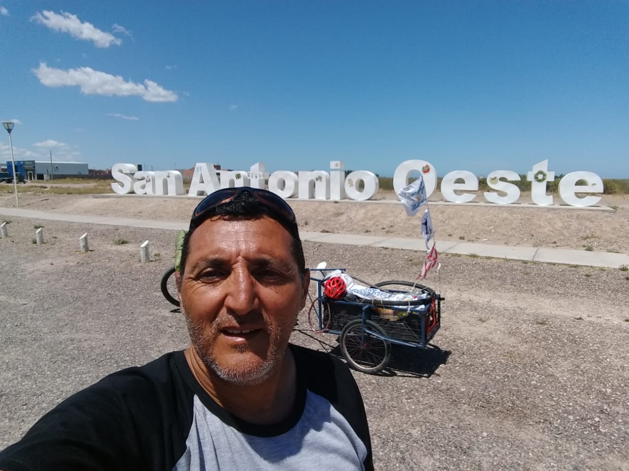 Hace 16 días partió de Bolívar con el objetivo de cumplir la promesa hecha a su padre de llegas a las Islas Malvinas. En un breve mensaje cuenta que lo ayudan y colaboran en cada ciudad que arriba, y partirá desde puerto Madryn rumbo a Trelew este domingo.-