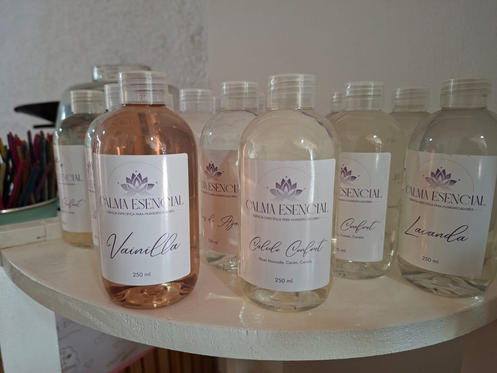 Vamos por la parte de humidificadores, que son esos artefactos que tan bonitos que quedan decorativos, que largan un humo, porque lo dice la palabra, y se les coloca la esencia. Además, tenemos disponible con toda la línea de perfuminas, difusores, están los aerosoles, las velitas aromatizantes también.