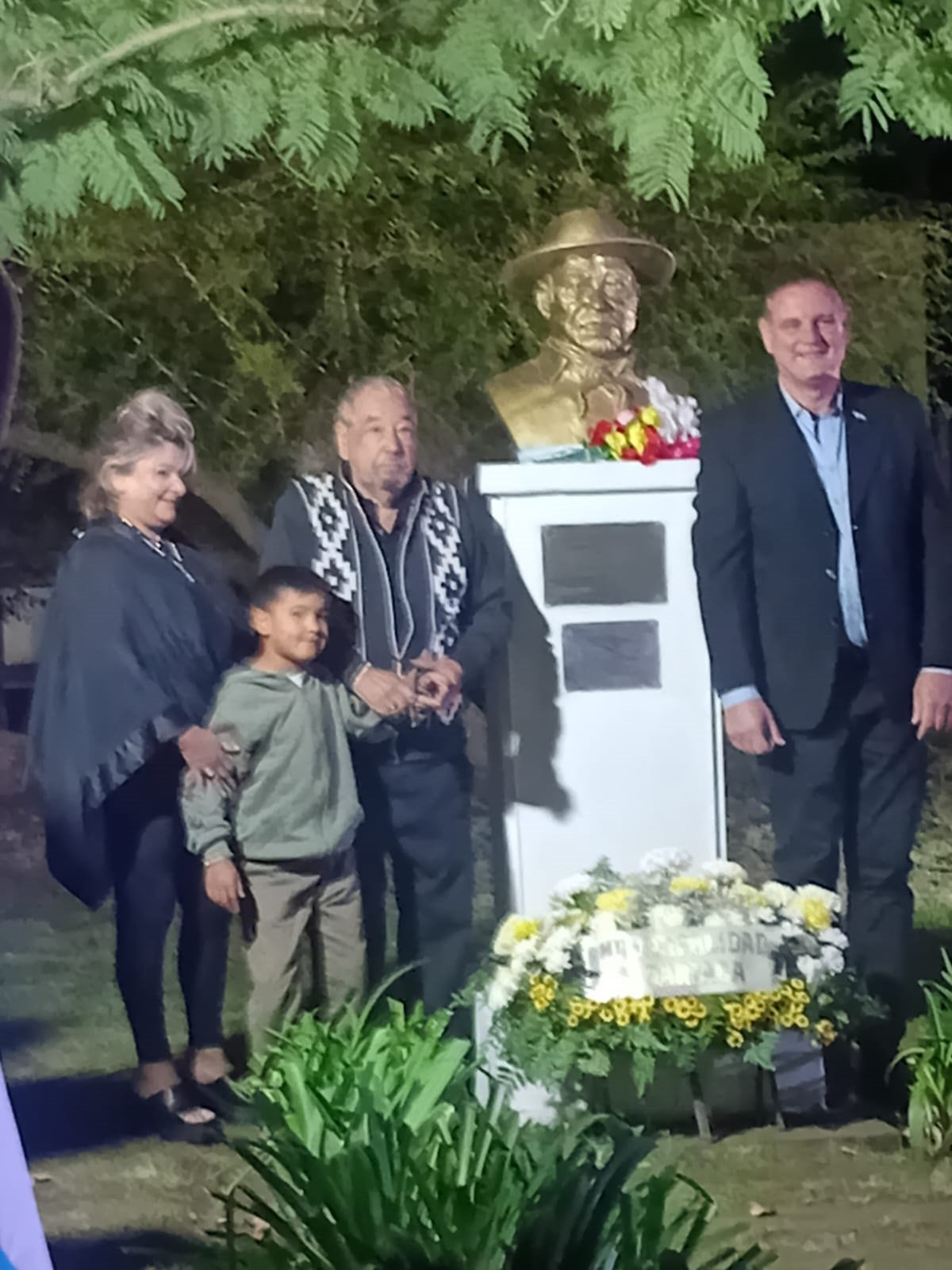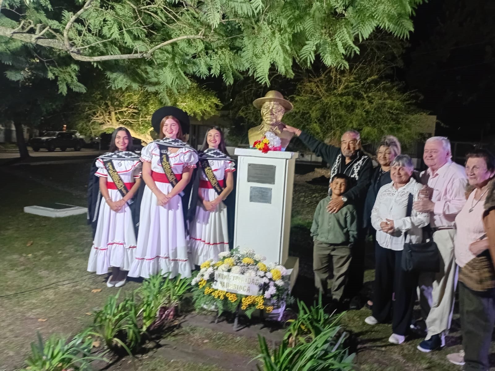 Ellas están viviendo en Buenos Aires, en Quilmes, sus cuatro hijas, Ana María, Patricia, Estrella y Karina. Ellas cuatro viven allá con su familia. En Madariaga solamente tíos de la parte de él, por parte de su papá y de su mamá, y después nosotros que estamos en Villa Gesell. Mi abuelo era Juan Lino Jiménez, mi papá es Lino Juan Jiménez, y mi hermano, Juan Lino Jiménez, igual que su abuelo. ¿Y siempre los vinculan a ustedes con tu tío? Sí, por ejemplo, hoy estamos invitados, porque hoy se le hace una ofrenda en su pueblo, en donde él fue ciudadano ilustre, Madariaga, obviamente, y hoy estamos todos convocados, porque para las hijas es hoy un poco medio difícil venirse hasta acá, así que obviamente los que estamos cerca rendimos el homenaje que se merece.