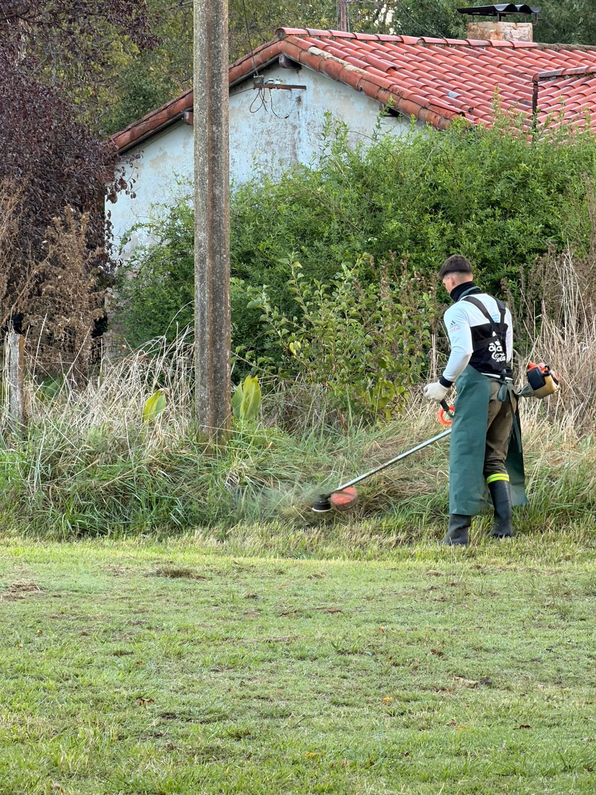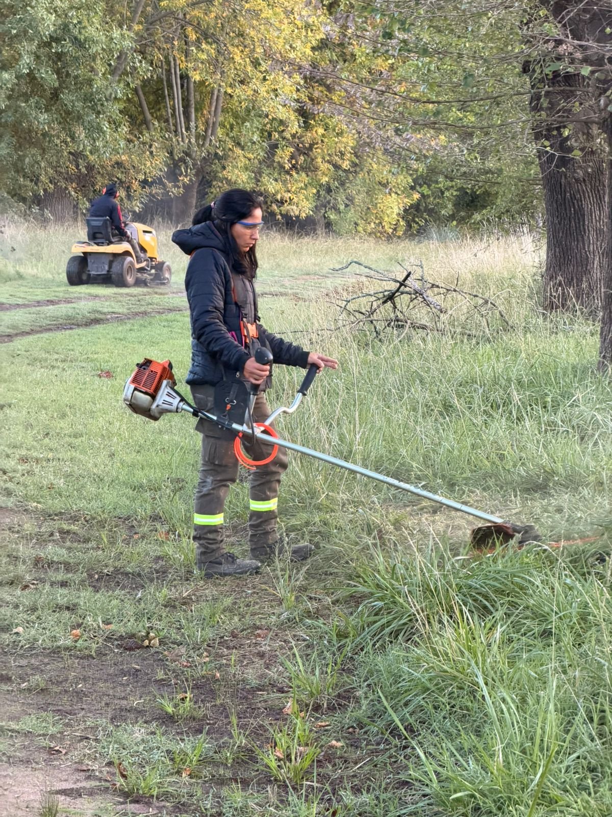 Las tareas incluyeron desmalezado con maquinaria pesada como tractor y moscato, corte con bordeadoras, poda de ramas secas, retiro de residuos y limpieza general de los espacios comunes, logrando una mejora integral del entorno urbano.