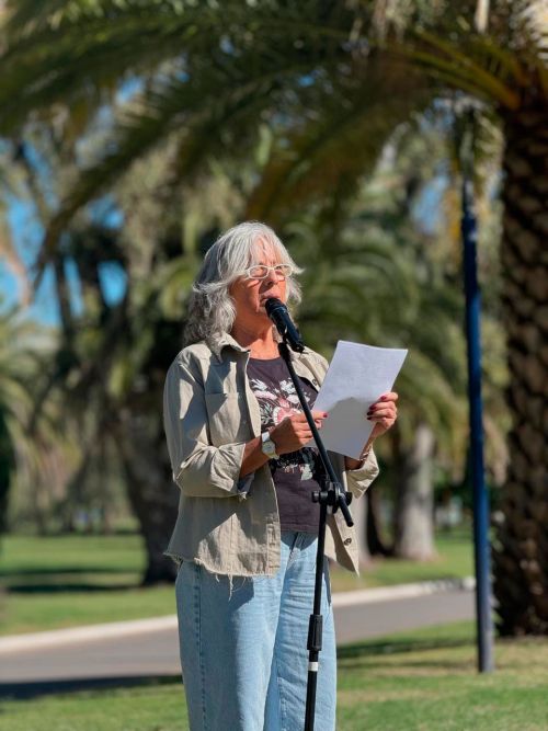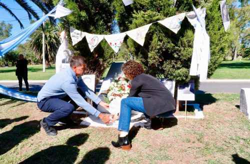 Como parte del acto, se colocó una ofrenda floral en el Monolito de la Memoria. Además, el intendente, junto a la directora de Políticas de Género y Derechos Humanos del Municipio, Celina Manghi, entregó reconocimientos a Tamara Madueña y a Duilio Lanzoni, destacado dramaturgo, director y actor bolivarense recientemente fallecido. El reconocimiento fue recibido por sus compañeros y compañeras del grupo de teatro Artecón.