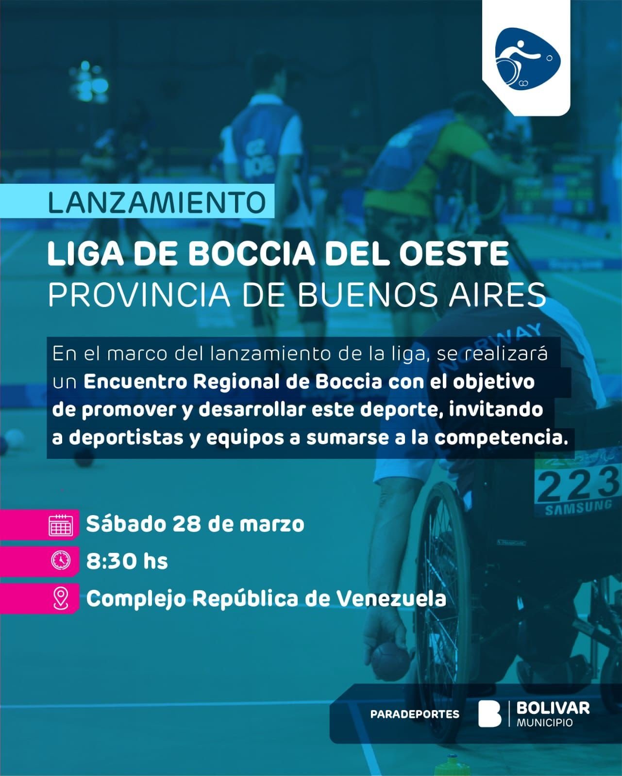 El Municipio de Bolívar, a través de la Dirección de Paradeportes, será anfitrión del lanzamiento de la Temporada 2026 de la Liga de Boccia del Oeste de la Provincia de Buenos Aires, que este año llevará el nombre “Tobi Salomón”, en homenaje al deportista bochero, por su compromiso, pasión y aporte al crecimiento de la disciplina.-