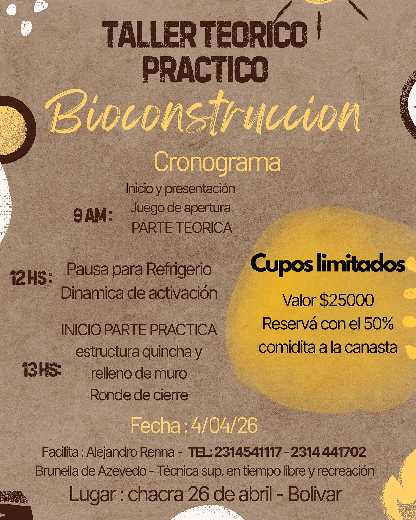El taller está destinado para cualquier persona que quiera ir, si bien son cupos limitados porque el espacio es pequeño y la experiencia queremos que sea lo más dirigida posible. Es en la chacra “26 de abril”, a partir de las 9 de la mañana hasta que se ponga el sol.