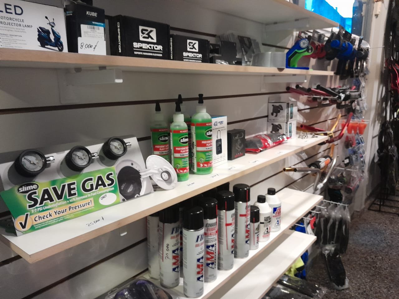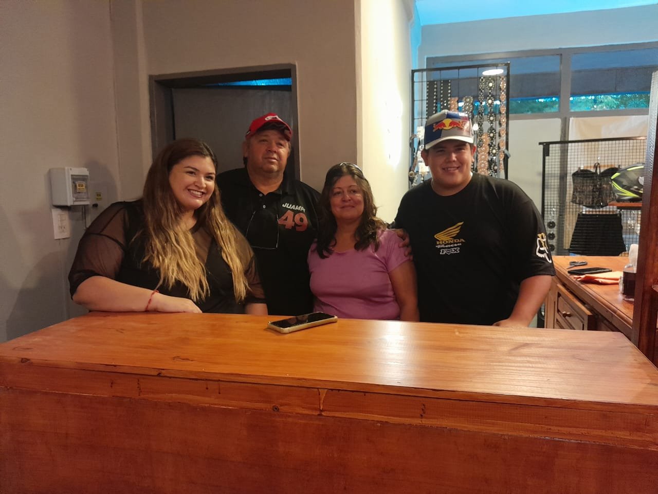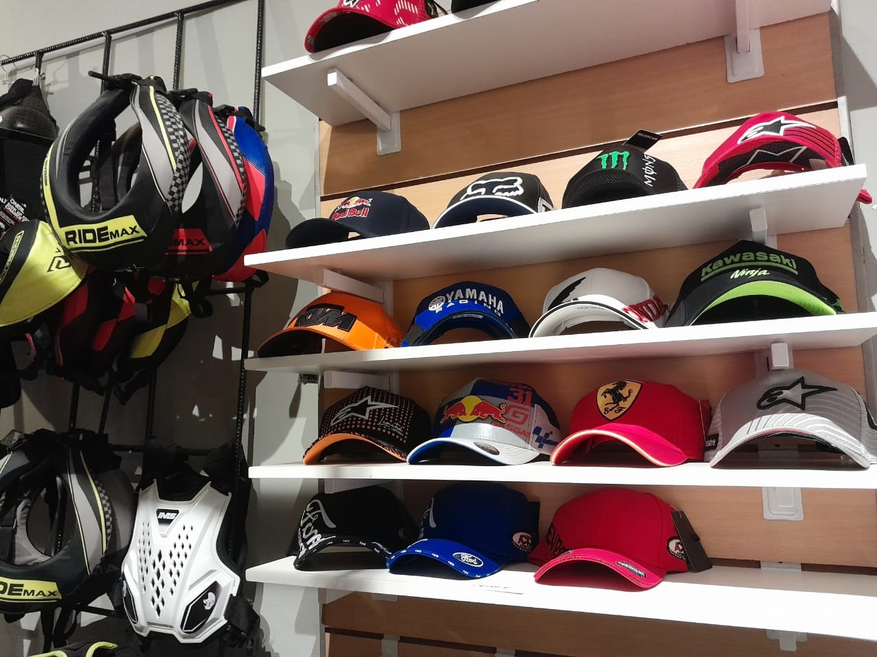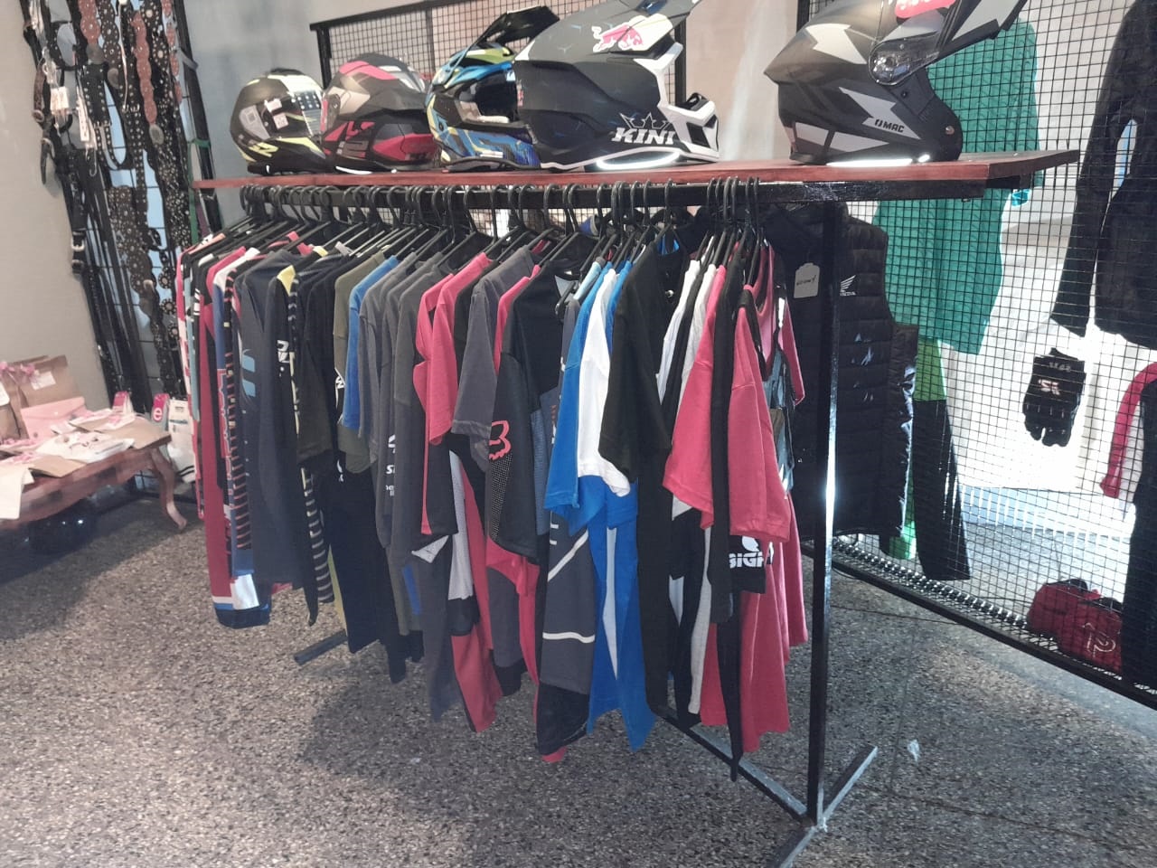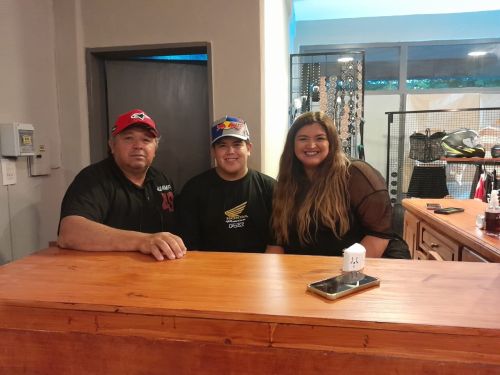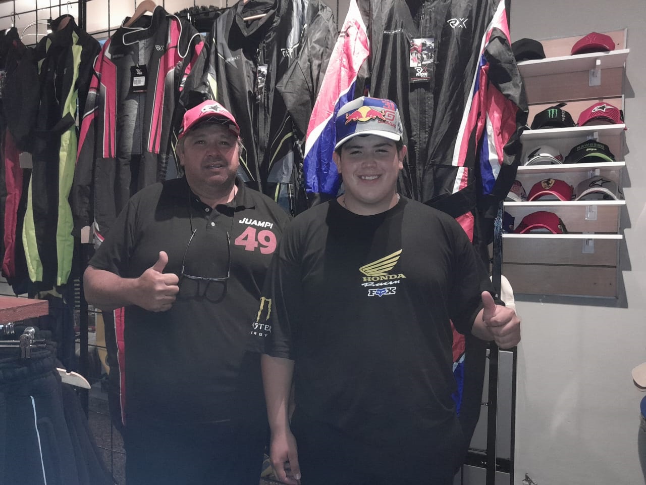 Juan Pablo compite hace tiempo y veíamos que a las carreras no iba a gente a vender, entonces nos pusimos a pensar, más que nada, que estaría bueno llevar esto. Empezamos con cosas chicas, pero estaría bueno llevar, no sé, unos trajes, cascos, antiparras, guantes y así fue evolucionando. Así empezó todo y ahora está como lo vemos.