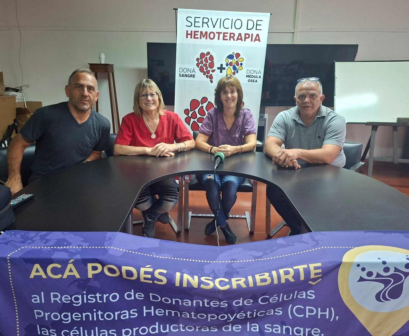 La doctota Adriana L'hoste, a cargo del Servicio de Hemoterapia, junto a Silvia Lioca que integra el equipo, Eddie Pisano donante y colaborador permanente, compartieron junto a Fabián Ollé, quien ya fue donante de Médula Ósea, hablaron del día de referencia que es el 1 de abril, e impulsaron el mes como disparador para inscribirse y donar.-