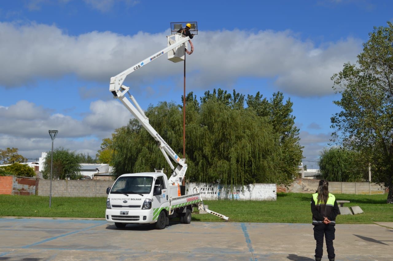 Las distintas áreas del municipio van a estar trabajando durante toda la jornada, de manera coordinada, llegando con todos los servicios. Vemos servicios públicos, obras públicas, espacios verdes, ambiente. En este momento estoy al lado de nuestra grúa de protección ciudadana, que está colocando la primer cámara, que va a estar situada en un barrio de Bolívar, y nuestra intención, como hemos dicho, es poder llegar a cada lugar con el monitoreo de las 24 horas.
