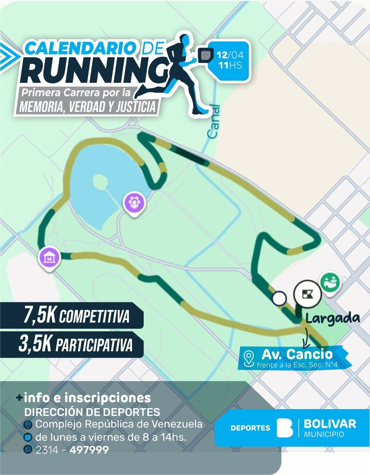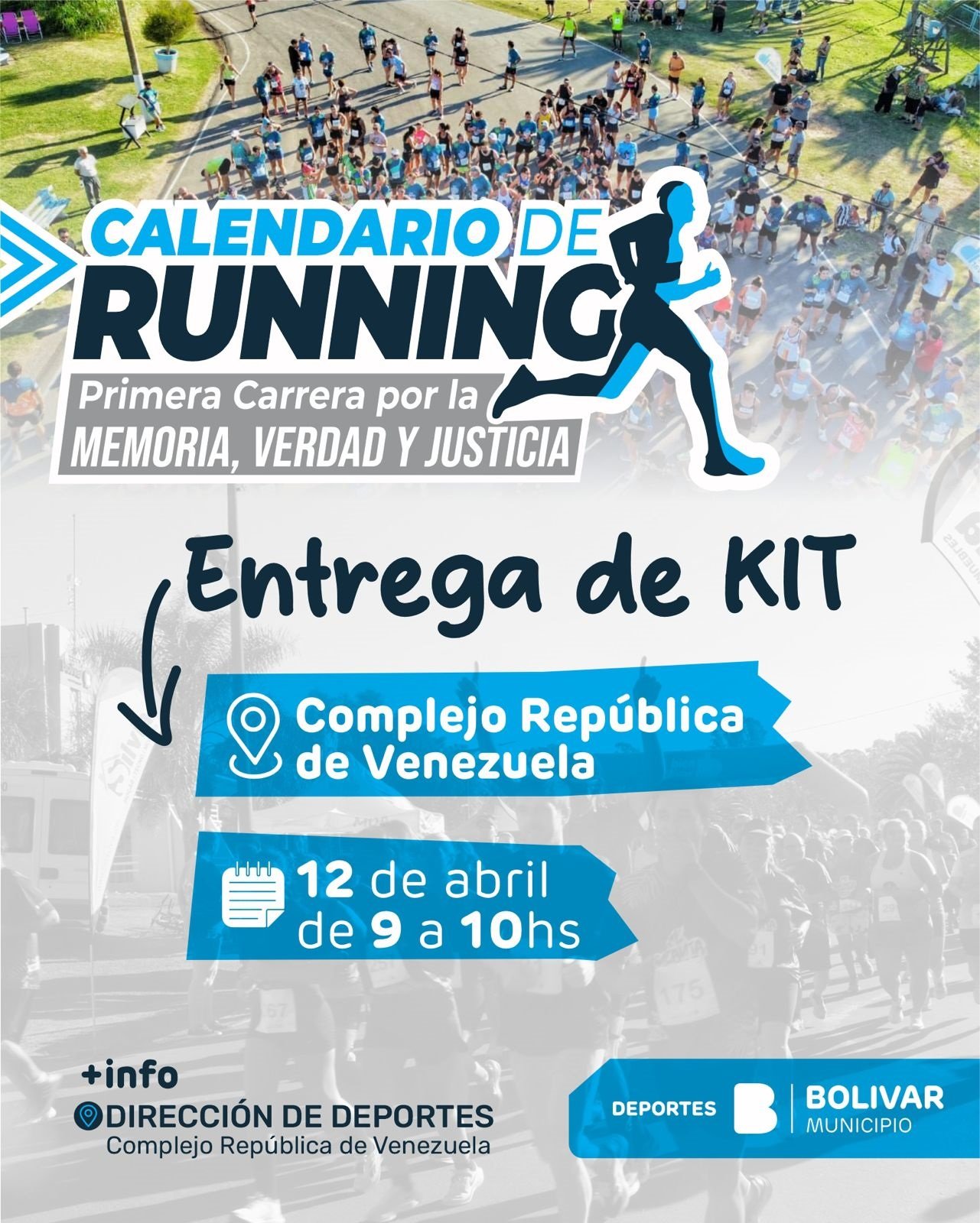 Bolívar se prepara para vivir la primera fecha del calendario de running 2026 con la Carrera por la Memoria, Verdad y Justicia, que se llevará a cabo este domingo 12 de abril con largada a las 11 horas desde Avenida Cancio, frente a la Escuela Secundaria N°4.